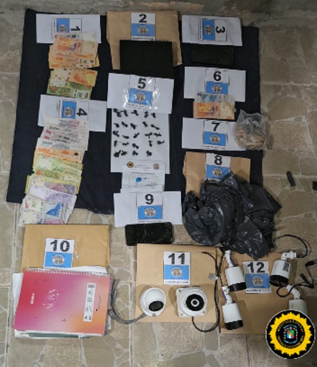 Como resultado del procedimiento, se procedió al secuestro de veinticuatro envoltorios de nylon conteniendo cocaína, estos listos para su comercialización, además de dinero en efectivo, teléfonos celulares, equipos de registro digital, cámaras de vigilancia y otros elementos directamente vinculados a la actividad ilícita.