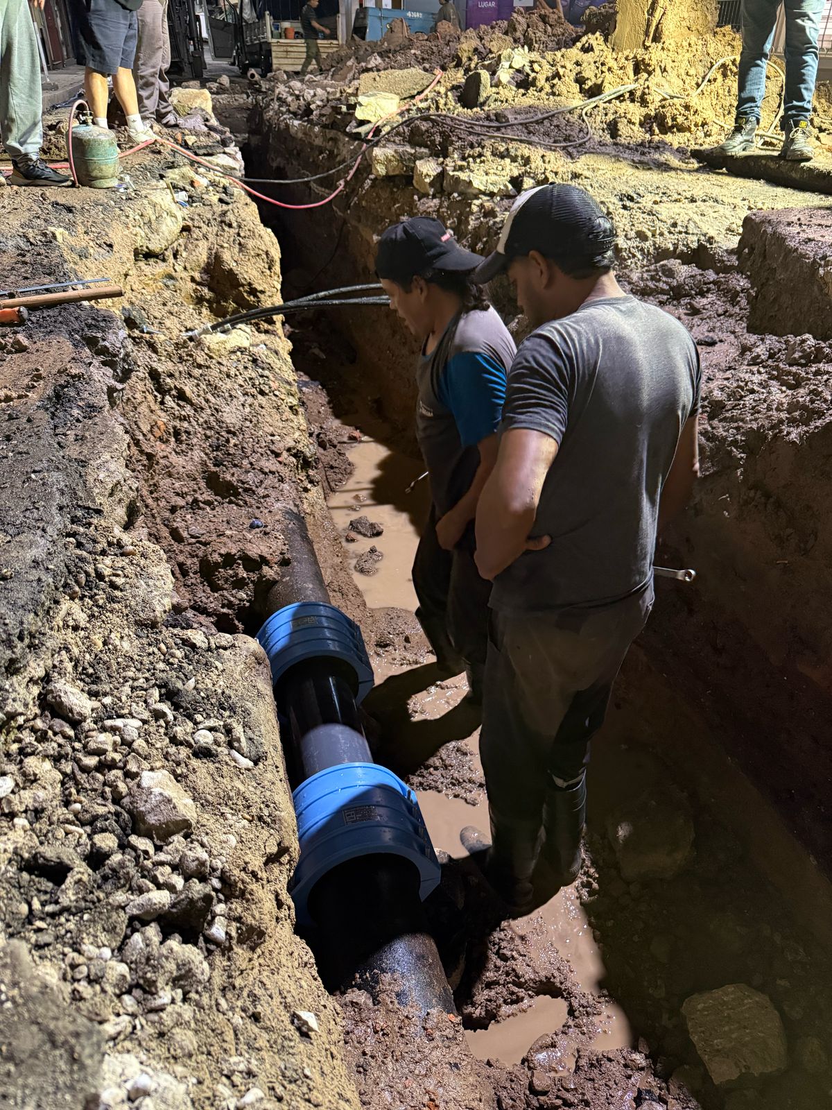 Sobre la reparación de cañería en horas de la madrugada dijo: “Data de aproximadamente 80 años, eso dificulta que cuando se rompe es muy dificultoso repararla, estuvimos con los equipos de Obras Sanitarias. Se recambió un tramo de 14 metros de PVC, eso nos posibilitó resolverlo de manera efectiva y se empezó a normalizar el servicio a las seis de la mañana”.