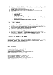 Los denunciantes hicieron reserva federal para acudir a la Cámara Nacional Electoral y a la Corte Suprema, en caso de que no se garantice la tutela judicial efectiva y la transparencia política.