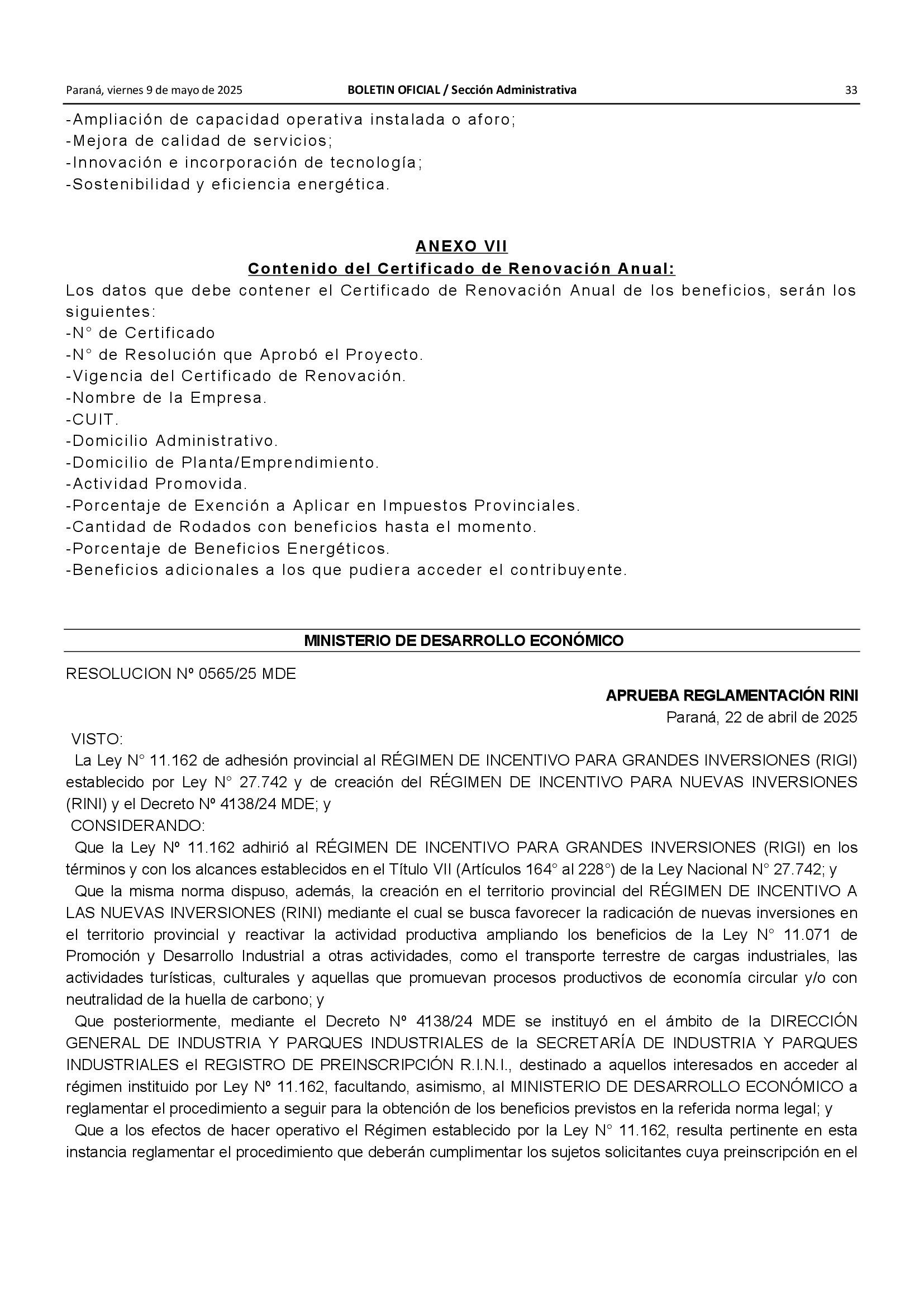 La Resolución N.º 0565/25 MDE fue publicada en el Boletín Oficial Nº 28.090.