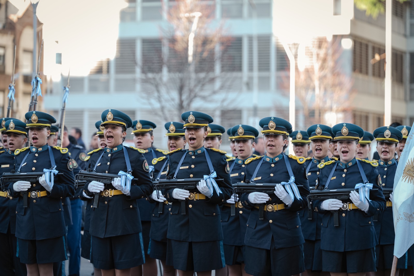La vicegobernadora Aluani tomó Juramento del Pabellón Nacional a alumnos de cuarto grado de la Escuela «Gregoria Pérez» de la ciudad de Paraná. Luego, hizo lo propio con los cadetes de 3° Año de la Escuela de Oficiales «Dr. Salvador Maciá», aspirantes a Agentes de la Escuela de Suboficiales «General Francisco Ramírez» y aspirantes de la Escuela de Agentes «Crio. Gral. Pedro Campbell» y de los aspirantes de la Escuela de Agentes Penitenciarios «Sargento Adolfo Emilio Reynoso». Como cierre del acto, se llevó a cabo un desfile de las distintas divisiones que componen la Policía de Entre Ríos y el Servicio Penitenciario provincial.