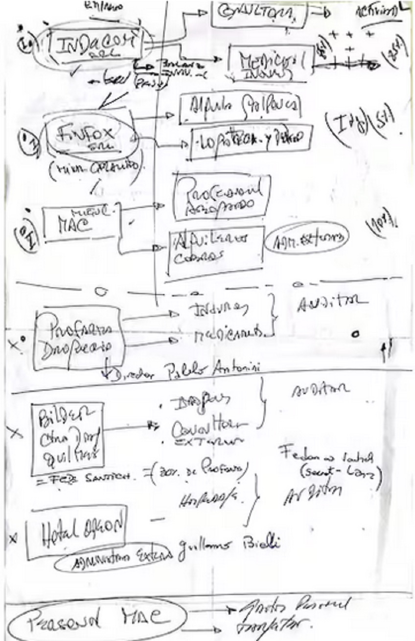Calvete era el que organizaba qué empresas integrarían esta lista privilegiada. Y el que cobraba por ello, recurriendo a un entramado de empresas que él mismo se encargó de graficar de puño y letra ante la fuente.